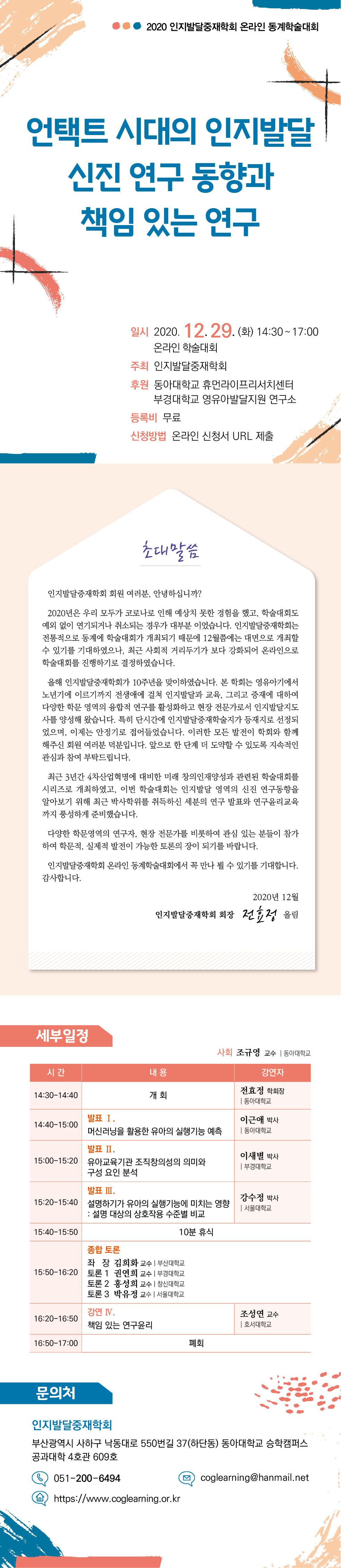 2020 인지발달중재학회 온라인 학술대회에 초대합니다